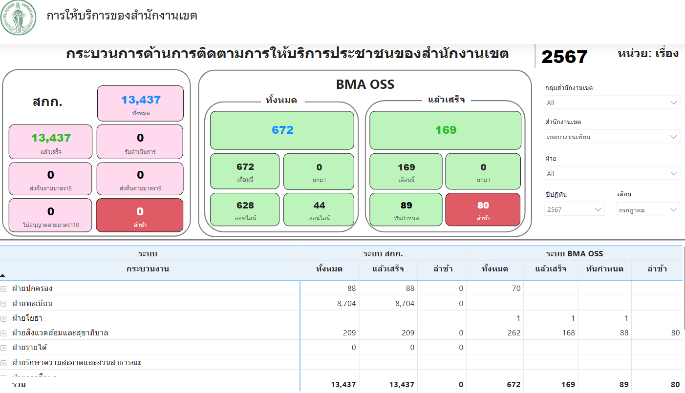 9 | รายงานผลความสำเร็จในการให้บริการภายในกรอบระยะเวลาตามคู่มือประจำเดือนกรกฎาคม 2567 | 9.00 | 01-07-2024 | 31-07-2024 |