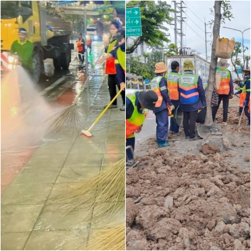 ![]() | 24-06-2024 | 1.00 | ![]() | ฝ่ายรักษาความสะอาดฯ (สิ่งแวดล้อม) 1. ตัดแต่งต้นไม้เดิมและปลูกต้นไม้ 2. ทำความสะอาดล้างถนน/ทางเท้า พร้อมจัดเก็บขยะ ฝ่ายโยธา (กายภาพ) 1. ประสาน สนย. สจส. และ กฟน. เมื่อมีประชาชนร้องเรียนบริเวณถนนสรรพาวุธ ฝ่ายเทศกิจ (การใช้งาน) 1. ดูเเลความเป็นระเบียบเรียบร้อยจุดทำการค้าบริเวณท่าน้ำสรรพาวุธ เนื่องด้วยกรุงเทพมหานครได้ดำเนินการปรับปรุงภูมิทัศน์ทางเท้าสาธารณะ | |