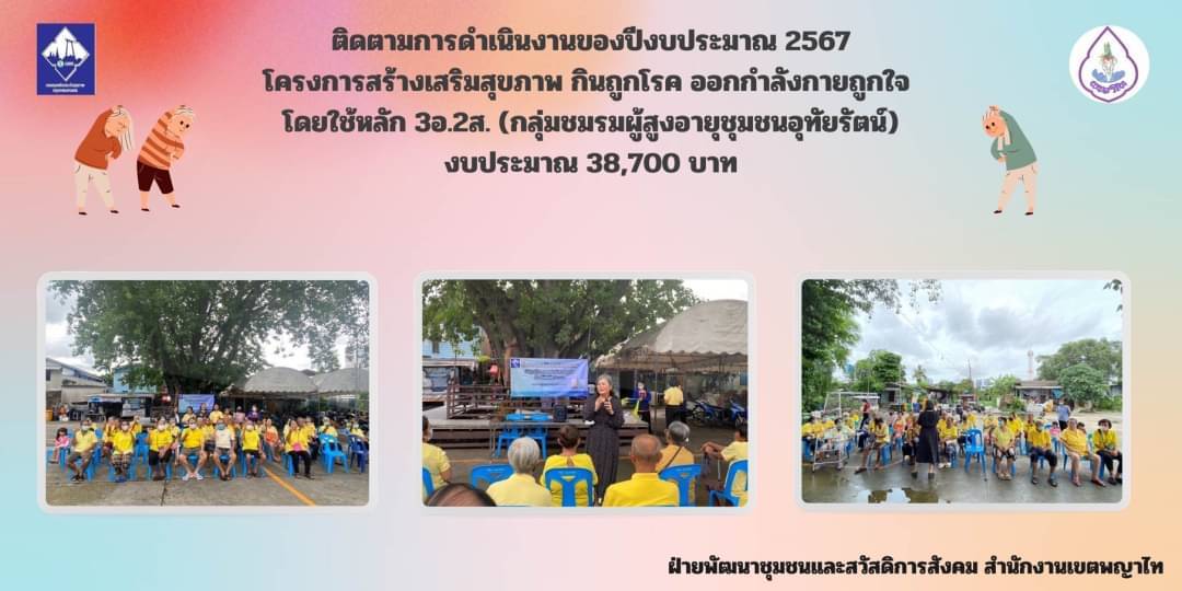 ![]() | 29-03-2024 | 0.00 | ![]() | จัดประชุมคณะอนุกรรมการกองทุนหลักประกันสุขภาพเขตพญาไทมีโครงที่ผ่านการพิจารณาเพิ่มเติมจำนวน 4 โครงการ ดังนี้ 1. โครงการรำเต้าเต๋อเพื่อสุขภาพของกลุ่มผู้สูงอายุชุมชนวัดมะกอกส่วนหน้างบประมาณ 20,425.-บาท 2. โครงการส่งเสริมสุขภาพห่างไกลยาเสพติดด้วยกีฬาฟุตซอล งบประมาณ 102,070.-บาท 3. โครงการคัดกรองความผิดปกติสายตาและแก้ไขปัญหาการมองเห็นไม่ชัดในกลุ่มผู้สูงอายุ งบประมาณ 429,050.-บาท 4. โครงการออกกำลังกายเสริมสร้างสุขภาพห่างไกลโรค งบประมาณ 32,000.-บาท รวมเป็นเงินทั้งสิ้น 583,545.-บาท | |