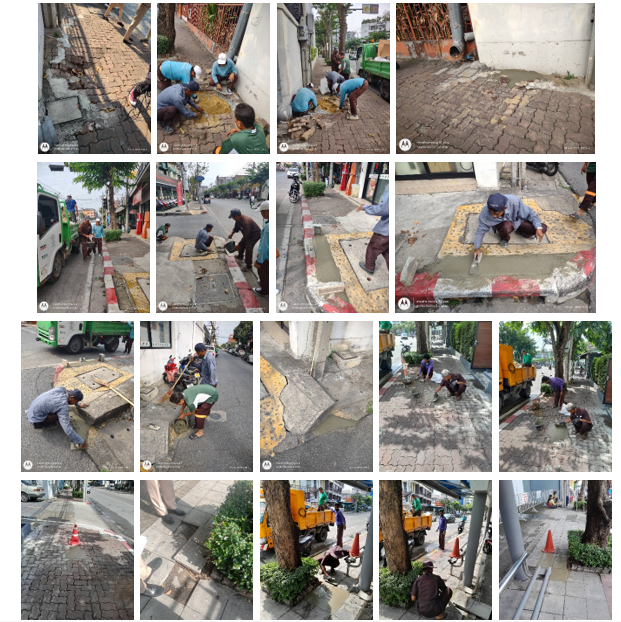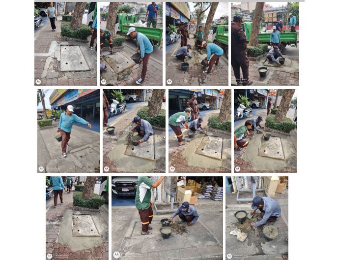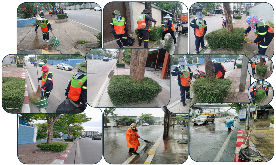 09-01-20241.801.ฝ่ายรักษา กวาดขยะ ล้างทำความสะอาดตลอดเส้นทาง และตัดแต่งกิ่งไม้ และปลูกทดแทน 2.ฝ่ายโยธา ซ่อมแซมผิวจราจร ทางเท้า และจัดระเบียบสายสื่อสารถนนนาคนิวาส